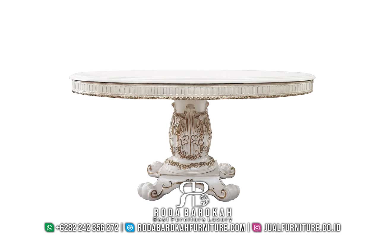 Menawarkan keanggunan, desain meja makan ini tidak hanya berfungsi sebagai tempat berkumpul, tetapi juga menjadi karya seni. Dengan warna putih yang bersih, ia memberikan nuansa cerah yang menarik perhatian setiap tamu. Selain itu, kaki meja yang diukir dengan indah menambah nilai estetika, menciptakan kesan mewah dan elegan di ruang makan Anda.