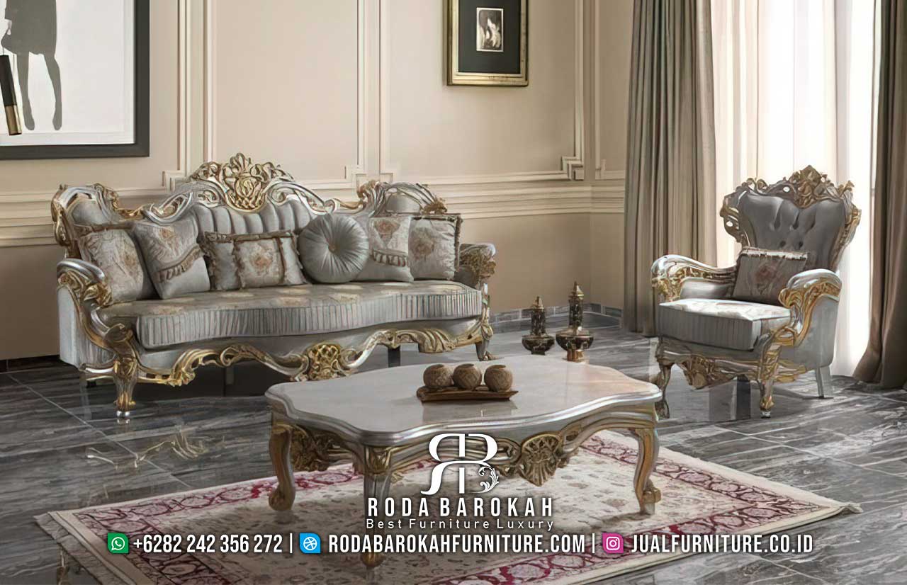 Bayangkan suasana hangat dan megah saat Anda memiliki Sofa Tamu Mewah ini. Dengan desain klasik yang dipadukan dengan warna abu-abu yang anggun, sofa ini menciptakan harmoni visual yang memikat di setiap sudut. Selain itu, setiap detail ornament ukiran terlihat menawan dan memberikan karakter unik, menjadikan ruang tamu Anda tiada tara.