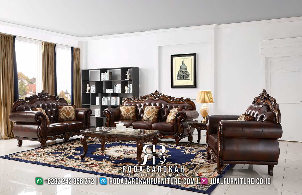Pesan Set Sofa Tamu Mewah Enak Dipakai RB-988 terbuat dari kayu jati dengan finishing doff, mewah dan nyaman untuk ruang tamu bergaya klasik modern.