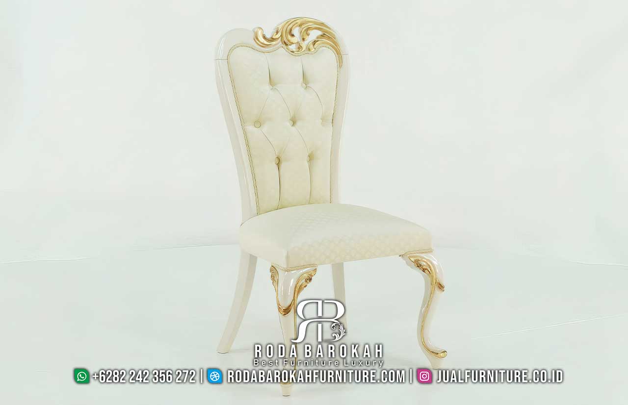 Set meja makan mewah ini menghadirkan sentuhan klasik yang memikat, sehingga setiap santapan terasa lebih istimewa. Selain itu, finishing cat duco putih menciptakan kesan bersih dan mewah yang mudah menyatu dengan dekorasi ruang makan Anda. Oleh karena itu, produk ini cocok untuk berbagai gaya interior, khususnya yang mengusung tema elegan dan klasik.