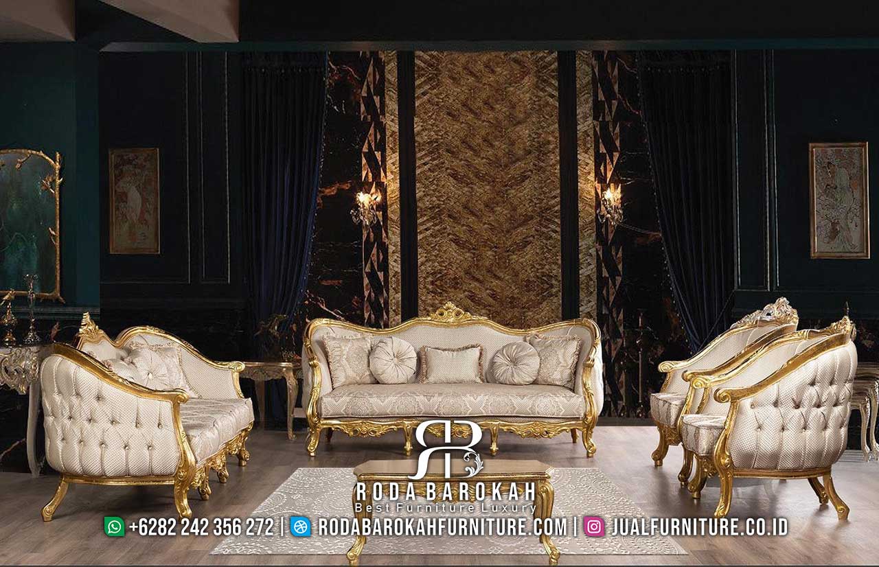 Serbu Sekarang Sofa Gold Mewah Emas Bahan Berkualitas RB-940, dengan rangka kayu jati dan finishing gold plated, sempurna untuk menambah nuansa luxury di rumah Anda.