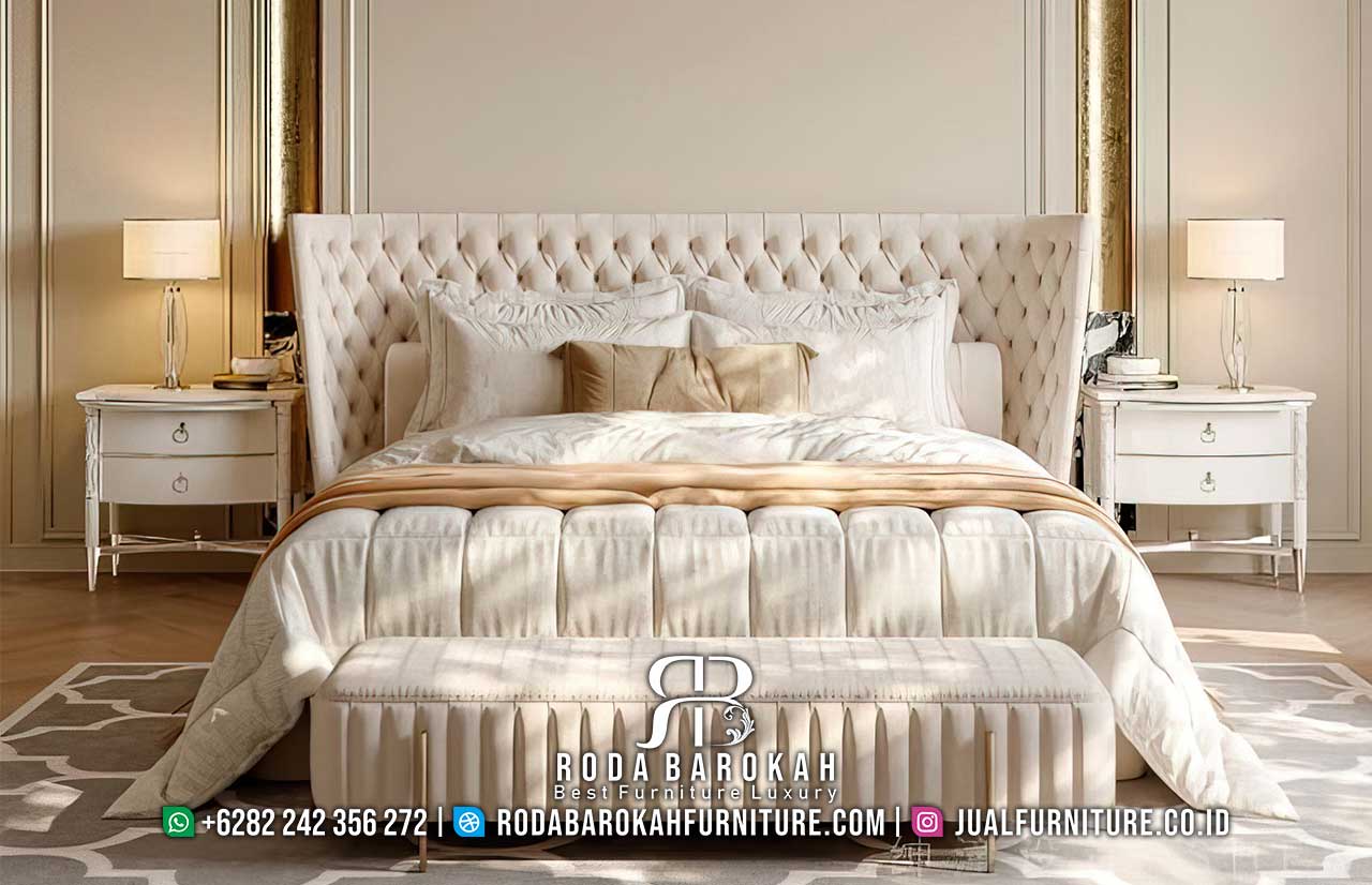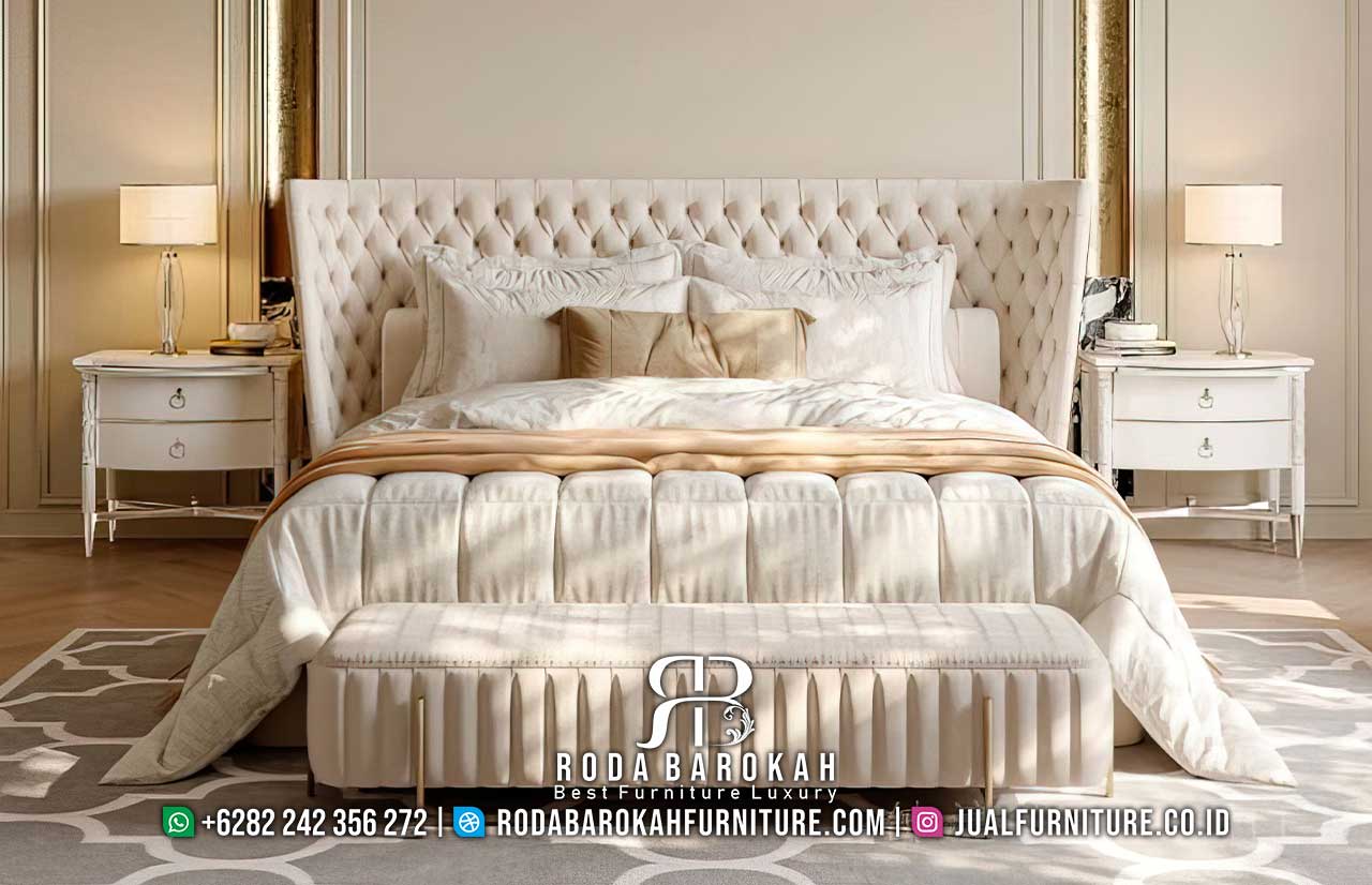 Warna krem yang netral memberikan fleksibilitas dalam memadukan furnitur lainnya, sementara sentuhan tufted pada kain pelapis memberikan detail estetika yang menarik. Oleh karena itu, tempat tidur ini tidak hanya nyaman, tetapi juga menambah keindahan visual ruangan Anda.
